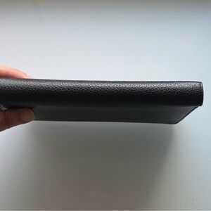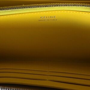 Elegant black leather wallet. Features Celine branding. Sleek and stylish design.