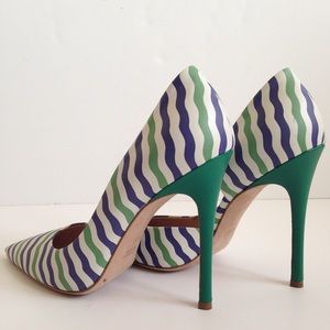 Artistic stripes characterize a point-toe silhouette in supple italian leather.