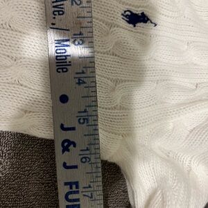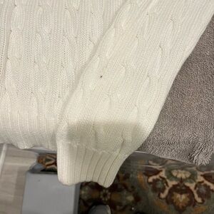 Classic V-neck sweater by Ralph Lauren. Features cable knit design. Soft and elegant.