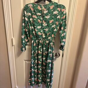 Old Navy XS Green Floral Long Sleeve Midi Dress Boho Cottagecore Easter
