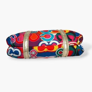 Coach Poppy Pop C Art Print Tote Bag Metallic Gold Trim Zippered Pockets