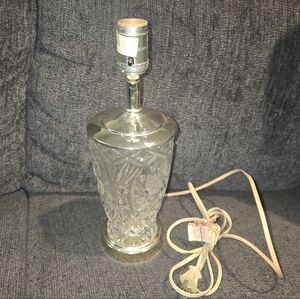 Illuminate your space with this elegant crystal table lamp featuring stunning silver accents. Perfect for adding a touch of sophistication to any room.