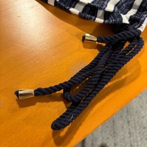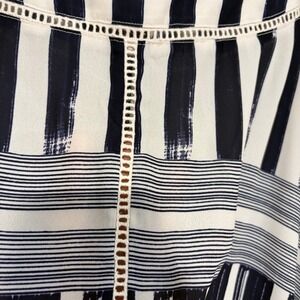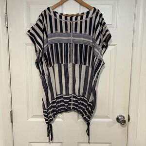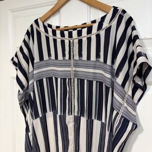 Lysse NY Flowy Gauzy Striped Kimono Kaftan Top L/XL Navy White Summer Vacation