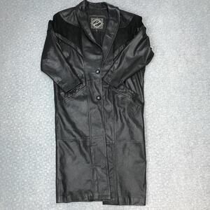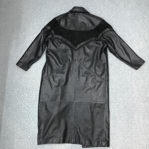Winlit Genuine Leather Duster Coat Womens Medium Black Western Suede Yoke