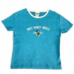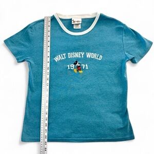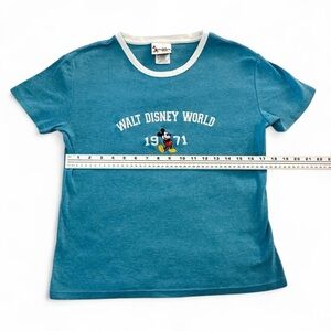 Walt Disney World 1971 MICKEY MOUSE Turquoise Shirt With White Neck Trim Ladies Cut Size Medium