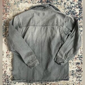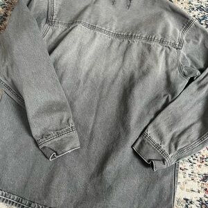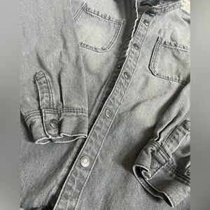 Pre-loved. Good condition. Pictures provided. Casual charcoal shirt denim jacket by Primark. Features button-up front and dual chest pockets. Ideal for layering.