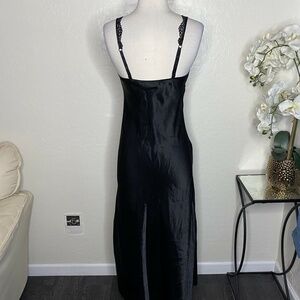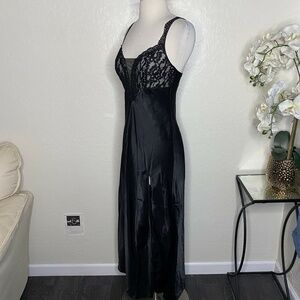 VTG Victoria's Secret Gold Label Satin Long Nightgown Slip Black SLITS Size P