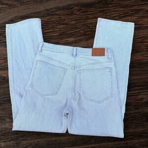Classic straight leg jeans. Light blue wash. Comfortable fit.