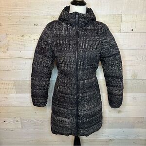The North Face Gotham Hooded Parka Jacket black Donegal polka dot print womens XS