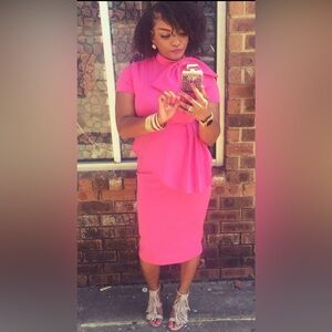 Unbranded Fuchsia Hot Pink Scuba Bow Peplum Pencil Style Dress Medium M Large L