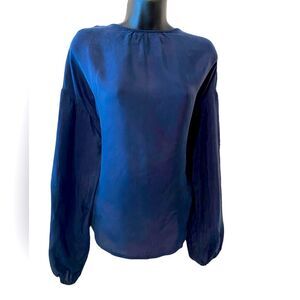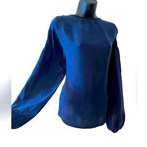 Calme by Johnny Was Navy blue silk long sleeve blouse NWT size Med. Luxury