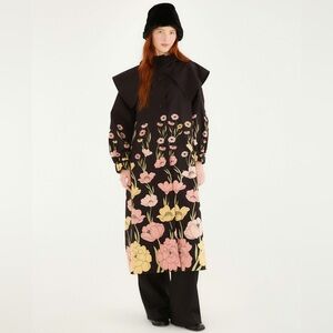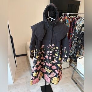 Farm Rio: Black Growing Flowers Raincoat / jacket