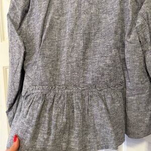 Elegant heather gray blazer with a sleek design. Perfect for professional or casual settings. Features a single button closure.
