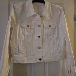NWOT - new w/o tags. Elevate your style with this chic white denim jacket. Perfect for layering, it offers a versatile look for any occasion. Check out my closet for other jacket styles and colors!