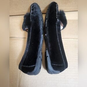 Forever Faux/Faux Fur....Have velvet feel to Material. ..... Black Slip-On Loafer...