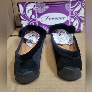 Forever Faux Suede/Faux Fur Black Slip-on Loafer Women Size 7.5