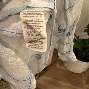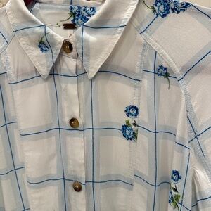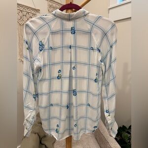 Free People XS White Blue Floral Grid Button Down Blouse Viscose, Fits a small