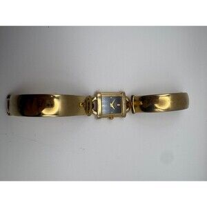 Elevate your accessory game with this elegant Vintage Citizen Quartz bangle-style watch. Combining the functionality of a timepiece with the aesthetic of a fine bracelet, this watch features a sophisticated jet-black dial housed in a polished gold-tone rectangular case.