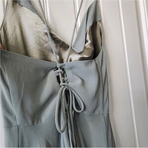 Lulus Romantically Speaking Sage Green Cowl Lace-Up Maxi Dress XS
