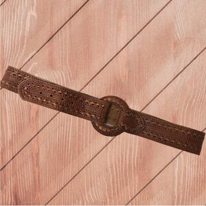 Leather Belt + Buckle Matching Ribbon Accent Stitching Boho Western Cowgirl