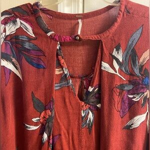 Stylish maroon top by Free People. Features a button detail.