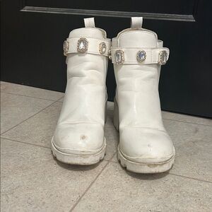 White Ankle Boots with Embellished Straps