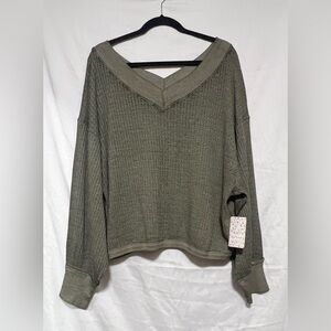 NWT We The Free Free People Women's South Side Thermal Top Moss Green Sweater