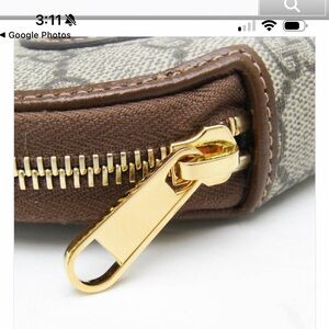 Elegant Gucci pouch with signature pattern. Features gold hardware and brown leather trim.Horsebit coin purse 💕