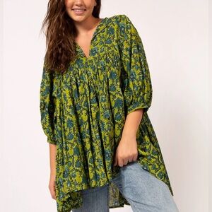 NATURAL LIFE Green Floral V-Neck with Front Tie Babydoll Mini-Dress