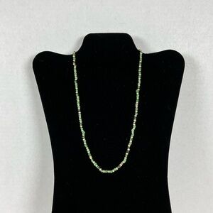 Banana Republic dainty green beaded necklace with gold-tone accents. Signature teardrop logo charm near clasp. Toggle clasp. Made in India. Ideal for elevating your style.