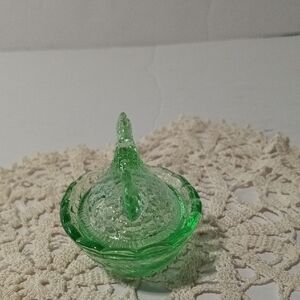 Lime Green Glass Hen on Nest Mini Salt Cellar Dish