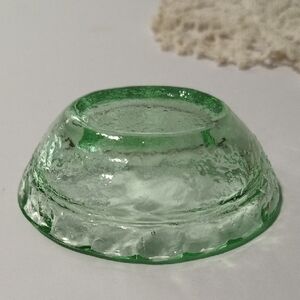 Charming lime green glass dish shaped like a hen on a nest. Perfect for decor or storage. This is the mini salt cellar and it measures 2.5 inches long and 2 inches wide. I believe it was made by the Mosser glass company and it is in excellent condition with no noticeable flaws. Thanks for looking.
