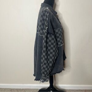 Oli & Hali Black Gray Mineral Washed Checkered Taw Edge Denim Shacket Sz M/L