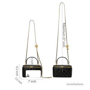 Fit: Adjustable and detachable metal chain strap, 3" top handle