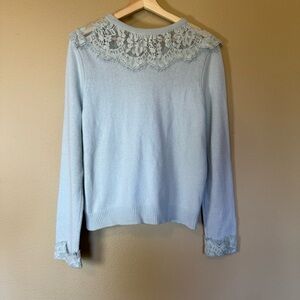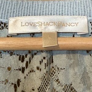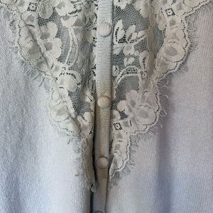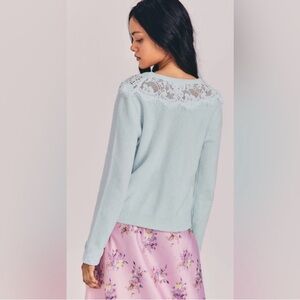 Love Shack Fancy Lace Long Sleeve Wool Cotton Cardigan Blue Size Large