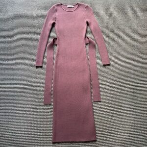 ANRABESS Crewneck Tie Waist Slim Fit Knit Slit Midi Dress, Purple