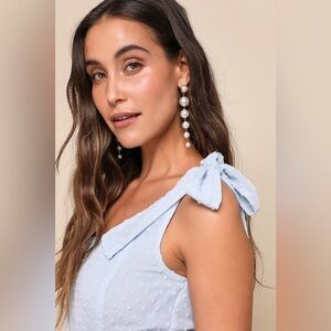 New Lulus Bimini Periwinkle Blue Swiss Dot Tie-Strap Midi Dress Size Medium