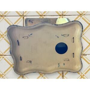 Classic mid‑century farmhouse look with metal body, square top platform, and scalloped base; shows age-appropriate wear, small paint chips, and light surface rust, but retains a great decorative look (untested for precise accuracy).