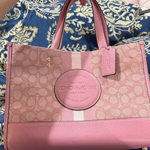 Chic Coach tote in pink. Signature canvas with leather accents. Perfect for daily use.