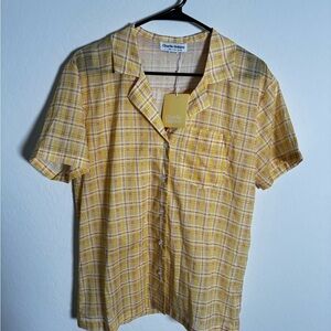 Chic yellow checkered top. Short-sleeve top! Comfortable and stylish!! NWT!!!