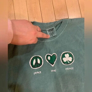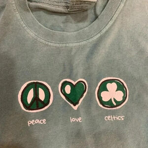 Peace☮️ Love❤️ Celtics☘️ teal green long sleeve shirt size medium 100% cotton.