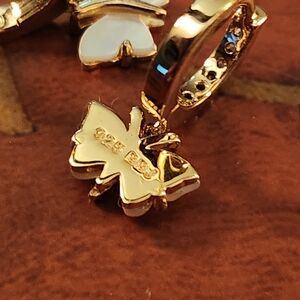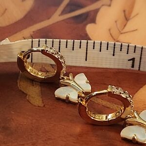 JTV butterfly earrings featuring mother-of-pearl and 0.28 CTW white zircon stones set in 18K gold over 925 sterling silver. Stamped. These earrings are very small, making them perfect for a little girl. Purchased from JTV in 2022 and still in original packaging.