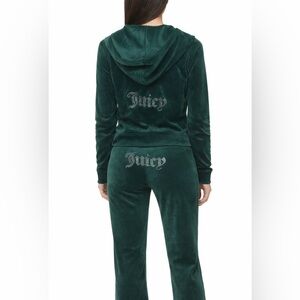 Luxurious velour jogger set. Rich dark green color. Ideal for relaxed style.