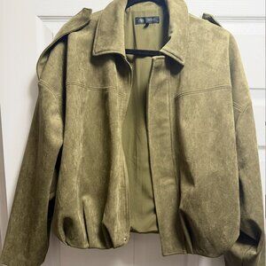 Zara faux suede jacket in khaki green