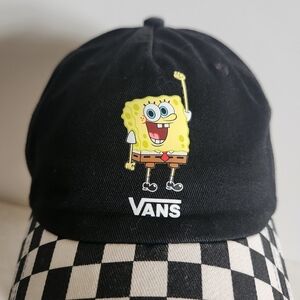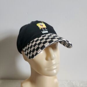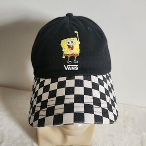Vans x SpongeBob Court Side Dad Off The Wall Black White Checkered Hat Cap. 2021. Made with a great quality canvas cotton construction. Curved checkered brim, Vans SpongeBob Square Pants logo on front panel, breathable eyelets around crown, button top, 6 panels, adjustable strapback with antique silver clip, Off The Wall logo on back, and Vans logo tag. One size fits all. No fading, snags, or stains. Like new condition!
