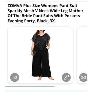 ZOMVA - 3X Black Sparkly Mesh V Neck Wide Leg Mother of The Bride Pantsuit
