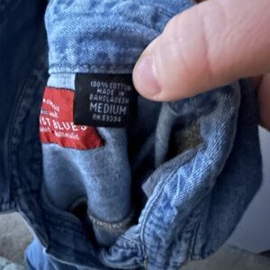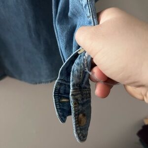 Classic blue denim button-up shirt with front pocket.