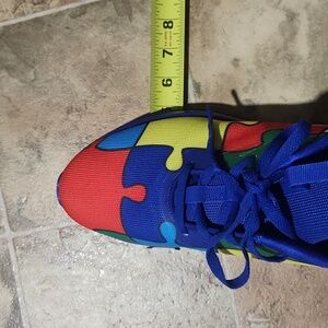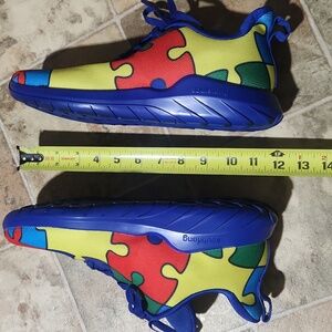 Bright and playful Men's shoes featuring a vibrant puzzle design. Perfect for adding a splash of color to any outfit. . the size 45 regular is size 11.5 - 12