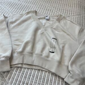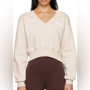 Chic off-white V-neck sweatshirt by Nike. Ideal for everyday comfort.