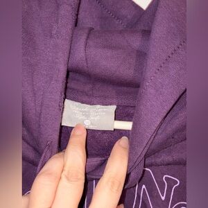 Stylish purple sweater with graphic design. Comfortable and trendy.